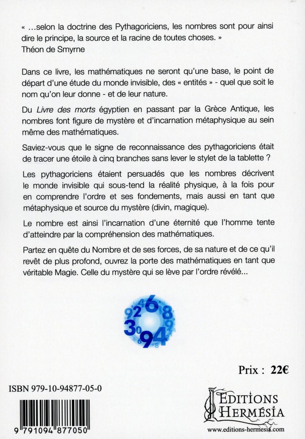 " ...selon la doctrine des Pythagoriciens, les nombres sont pour ainsi dire le principe, la source et la racine de toutes choses." Théon de Smyrne Dans ce livre, les mathématiques ne seront qu'une base, le point de départ d'une étude du monde invisible, des "entités" - quel que soit le nom qu'on leur donne - et de leur nature. Du Livre des morts égyptien en passant par la Grèce Antique, les nombres font figure de mystère et d'incarnation métaphysique au sein même des mathématiques. Saviez-vous que le signe de reconnaissance des pythagoriciens était de tracer une étoile à cinq branches sans lever le stylet de la tablette ? Les pythagoriciens étaient persuadés que les nombres décrivent le monde invisible qui sous-tend la réalité physique, à la fois pour en comprendre l'ordre et ses fondements, mais aussi en tant que métaphysique et source du mystère (divin, magique). Le nombre est ainsi l'incarnation d'une éternité que l'homme tente d'atteindre par la compréhension des mathématiques. Partez en quête du Nombre et de ses forces, de sa nature et de ce qu'il revêt de plus profond, ouvrez la porte des mathématiques en tant que véritable Magie. Celle du mystère qui se lève par l'ordre révélé...