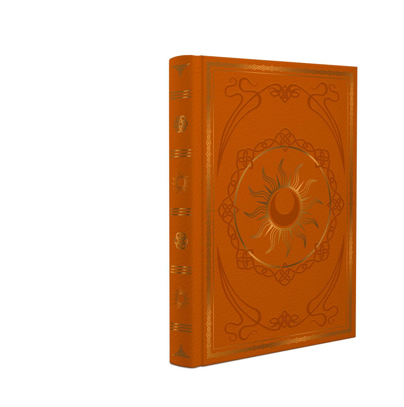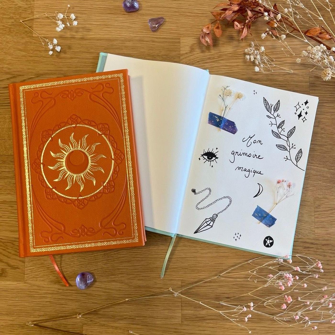Ce carnet au format A5 (15 x 21) et à la couverture rigide, en similicuir et ornée de dorures, deviendra votre compagnon idéal en tant que grimoire de pratique ou en tant que compagnon de route pour noter tout ce que vous souhaitez. Laissez-vous charmer par son aspect lumineux !