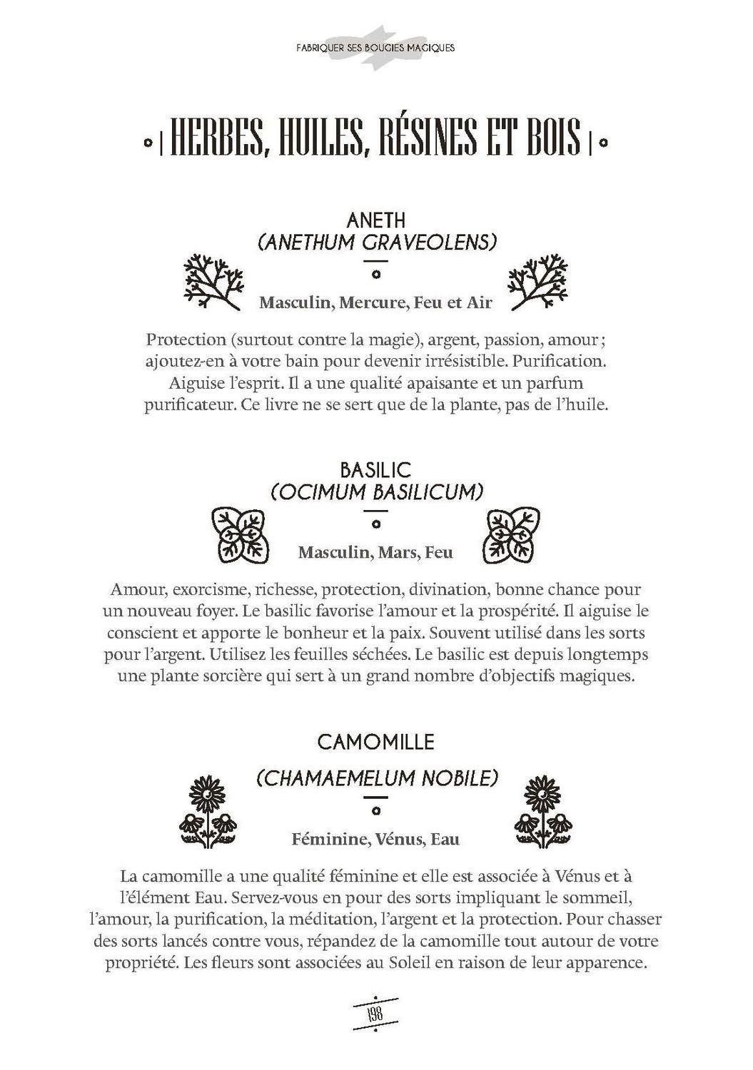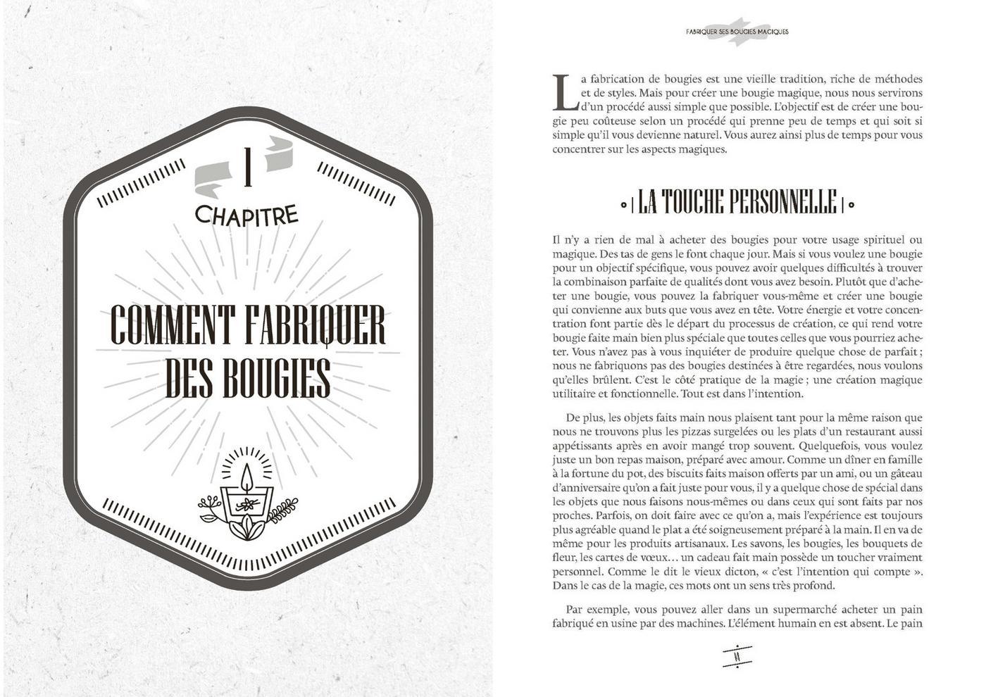 Les bougies sont indispensables à toute pratique magique et pourtant, il est parfois difficile de trouver dans le commerce celles qui rassemblent les qualités que l’on recherche. Si vous visez un objectif particulier, le mieux est donc de les fabriquer vous-mêmes, afin de leur donner les caractéristiques dont vous avez besoin et de les imprégner de vos intentions personnelles. La fabrication de bougies est un moyen simple et puissant d’insuffler votre énergie à votre pratique et à votre vie. En effet, vous projetez de l’énergie dans la bougie quand vous la créez, énergie que vous libérez quand vous allumez la bougie pour un sort ou un rituel. Dans ce livre ludique et pratique, vous découvrirez comment fabriquer des bougies magiques à l’aide d’objets peu coûteux et faciles à trouver. Vous serez guidés à travers chaque étape, du mélange de la cire au choix des composants magiques les plus puissants. Alors préparez vos ingrédients et lancez-vous dans la confection de bougies lunaires, solaires, liées au zodiaque, aux chakras, aux éléments ou aux sabbats mais également des bougies de protection ou pour attirer l’amour, la prospérité, la réussite…